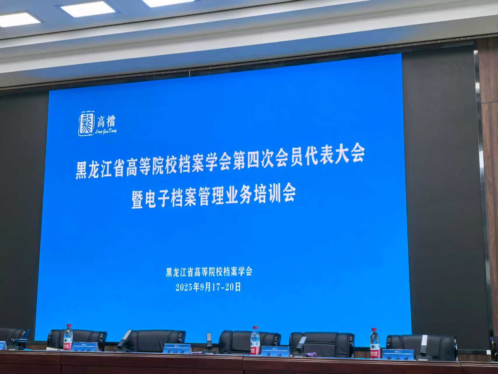 2025年9月17日至20日,哈尔滨理工大学档案馆馆长蔡野、副馆长程坤及信息技术室主任王宇一行三人赴黑龙江农业经济职业学院,参加黑龙江省高等院校档案学会第四次会员代表大会暨电子档案管理业务培训会。本次会议聚焦档案数智化转型与电子档案管理创新,为全省高校档案工作者搭建了政策学习、技术交流与经验共享的重要平台。