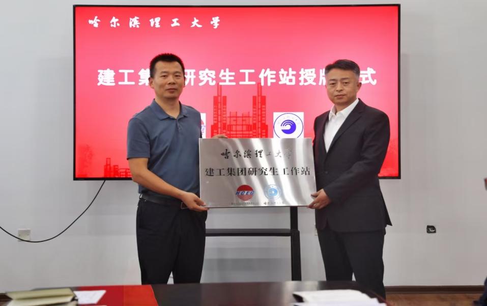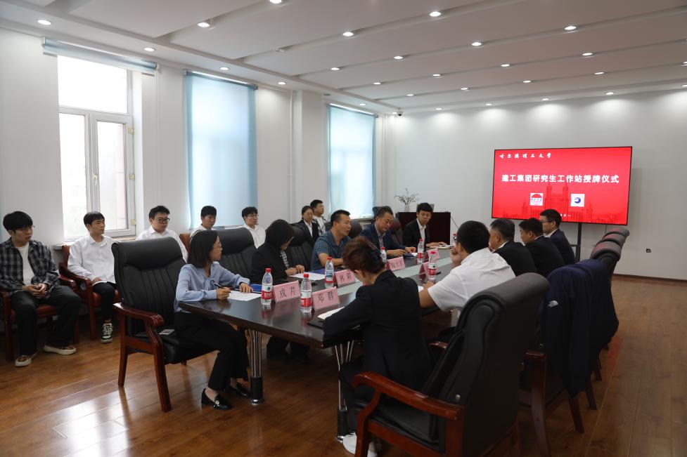 在与会嘉宾的共同见证下,陶大军处长代表哈尔滨理工大学向黑龙江省建工集团总经理张成武授予“建工集团研究生工作站”牌匾,标志着双方在产教融合方面迈出了坚实的一步,将开启校企深度合作的新篇章。随后,双方就工作站运行机制、项目合作、导师互聘等具体事宜进行了深入交流。
