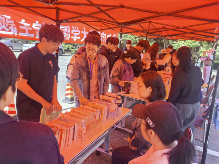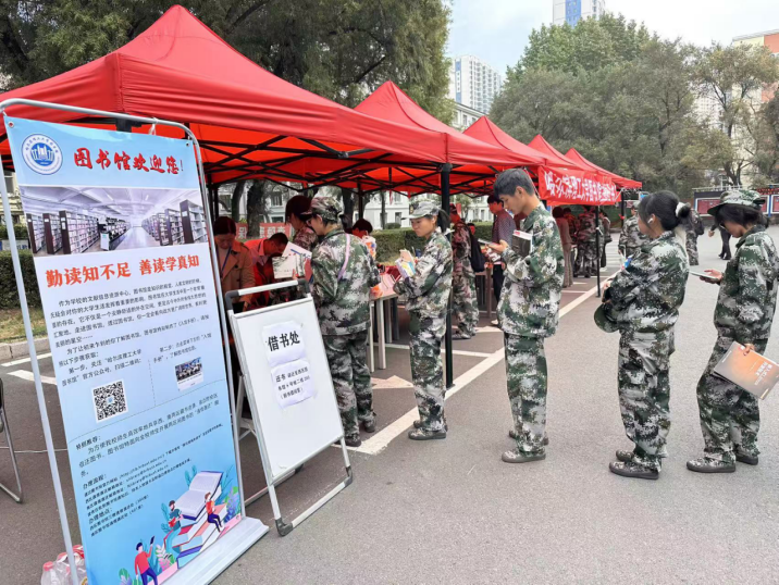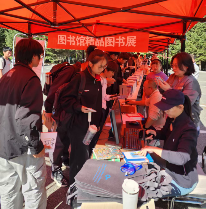 为丰富校园阅读生态、营造书香校园环境,9月28日至29日,图书馆分别在学校西校区一食堂前和南校区图书馆楼前广场举办了为期两天的“书香·启航”主题图书展。书展现场展出图书2000余册,吸引了千余名师生驻足参与,累计借出图书近600册,其中新生同学借阅占比超过70%。