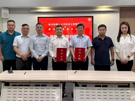 活动中,周长群一行与浙江省黑龙江商会相关负责人围绕人才培养、岗位供给等议题展开深入座谈,他详细介绍了学院的学科特色、专业设置等情况;郭宝鹏重点说明了学院培养具备实践能力与创新精神的复合型经管人才等情况。学院与浙江省黑龙江商会正式签署《哈尔滨理工大学经济与管理学院与浙江省黑龙江商会就业战略合作协议》,双方围绕优势互补、互惠双赢、务实高效的合作原则,明确了针对哈理工经管学院人才培养、就业服务、平台建设的三大目标。