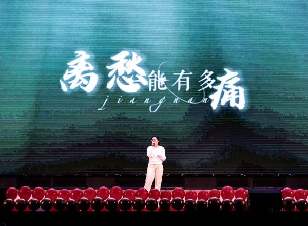 邢艾嘉同学的独唱《江南》,将江南的烟雨朦胧、石桥人家的温婉意境娓娓道来,清亮婉转的歌声伴着江南水乡风格的背景画面,为现场新生铺展开一诗意画卷。