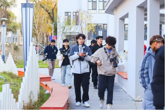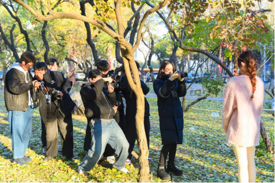 最受期待的校园外拍环节拉开帷幕。同学们手持相机,在专业模特的配合下漫步于风景优美的校园中,将讲座中学到的人像氛围感塑造技巧充分付诸实践。大家聚焦光影与人物神态精准构图、细致调整相机参数,全心投入捕捉校园里的灵动瞬间与人物独特神韵,现场满是创作的热情与活力。
