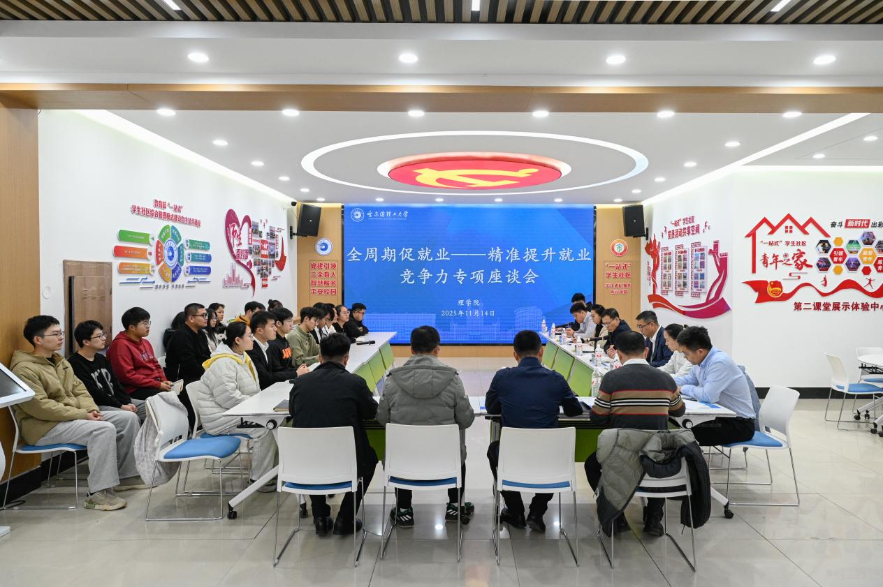 为帮助2026届毕业生提前把握就业形势、明晰政策导向、做好职业规划,理学院于11月14日在学校西区七公寓一站式学生社区召开全周期促就业——精准提升就业竞争力专项座谈会。校党委副书记、工会主席郭加利,理学院党委书记宋广军、党委副书记王冰、副院长孟桂芝、正处级辅导员徐岩、应用数学系主任张红旭、应用物理系主任王军军、智联招聘校园关系部高校渠道经理魏国庆、大学生就业服务中心就业市场科副科长姜其锋、2022级本科生辅导员孙国宇、大学生就业服务中心教师周文莱出席会议,会议由理学院党委副书记王冰主持,2022级本科生、2023级研究生代表参会。
