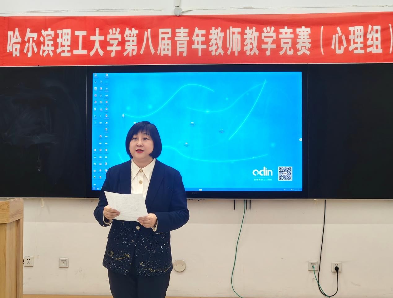 本次竞赛特邀黑龙江大学教师发展学院教授、中国心理学会心理学教学工作委员会委员、黑龙江省应用心理学会会长郝春东;哈尔滨理工大学教学督导委员会委员崔玉祥教授;哈尔滨理工大学理学院党委书记宋广军、校党委统战部副部长王莉娟、组织部副部长杨剑锐五位专家担任评委。校工会常务副主席单鹂娜、党委学工部部长戴湘竹、副部长田海燕、心理健康教育中心主任吕彬江出席竞赛现场。竞赛由戴湘竹部长主持,部分大学生心理健康课程授课教师到场观摩学习。