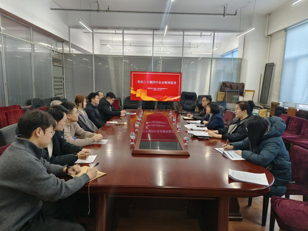 为深入学习贯彻党的二十届四中全会精神,切实把思想和行动统一到党中央决策部署上来,推动全会精神入脑入心,按照学校统一部署安排,近日,学生工作部、团委党支部在教学主楼E424室召开学习贯彻党的二十届四中全会精神宣讲报告会。学校党的二十届四中全会精神宣讲团成员戴湘竹、支部书记韩彧博分别作专题宣讲,会议由党委学生工作部副部长曹石主持。