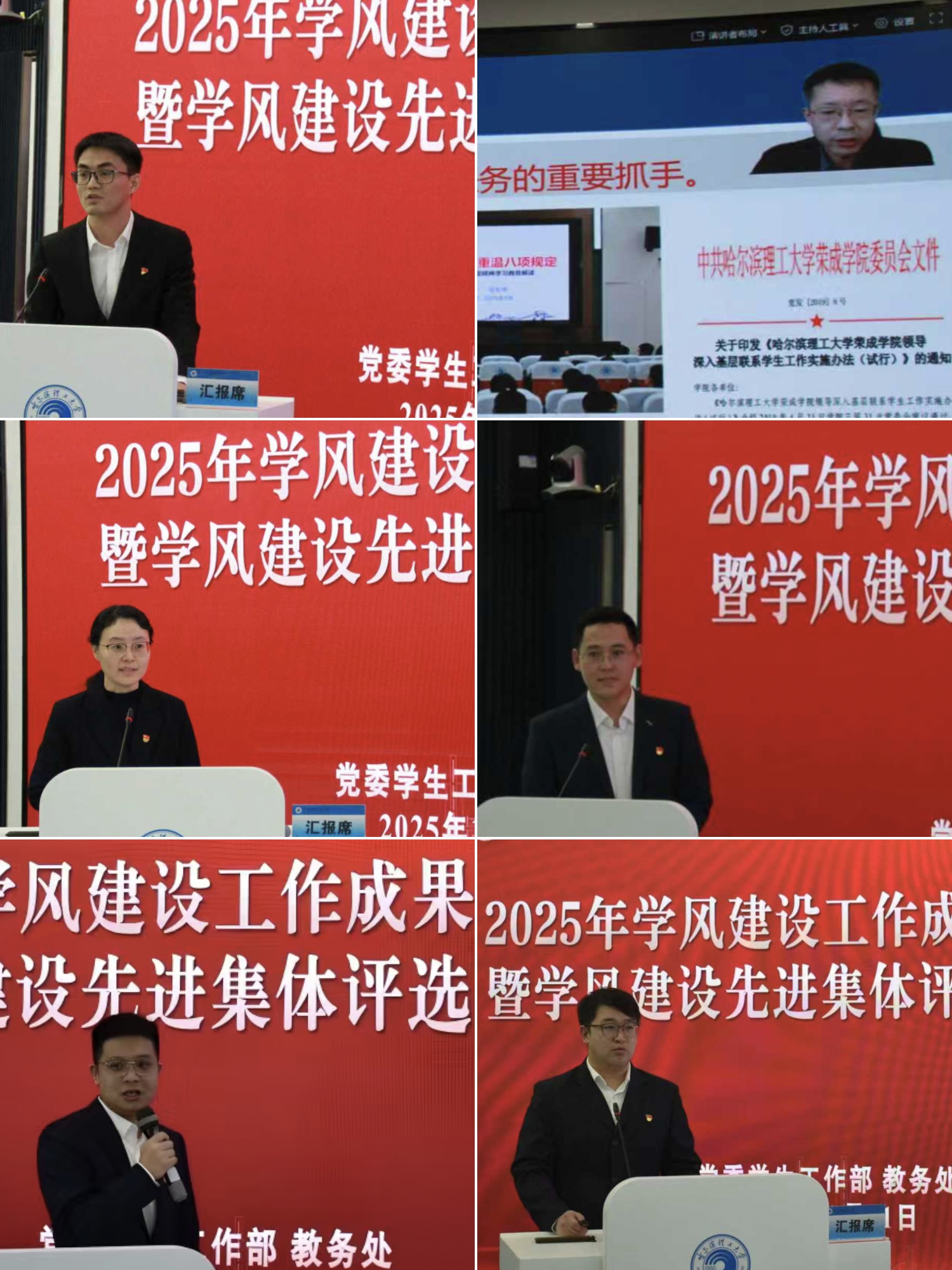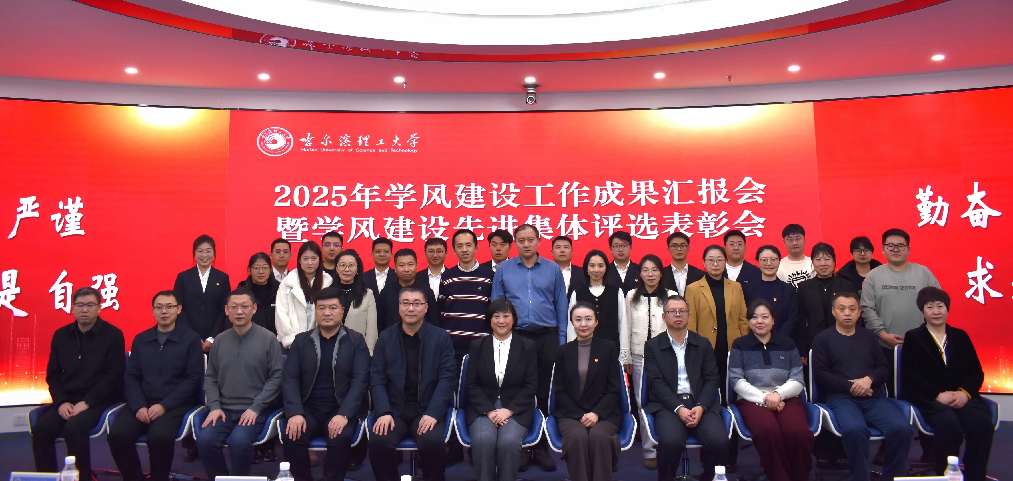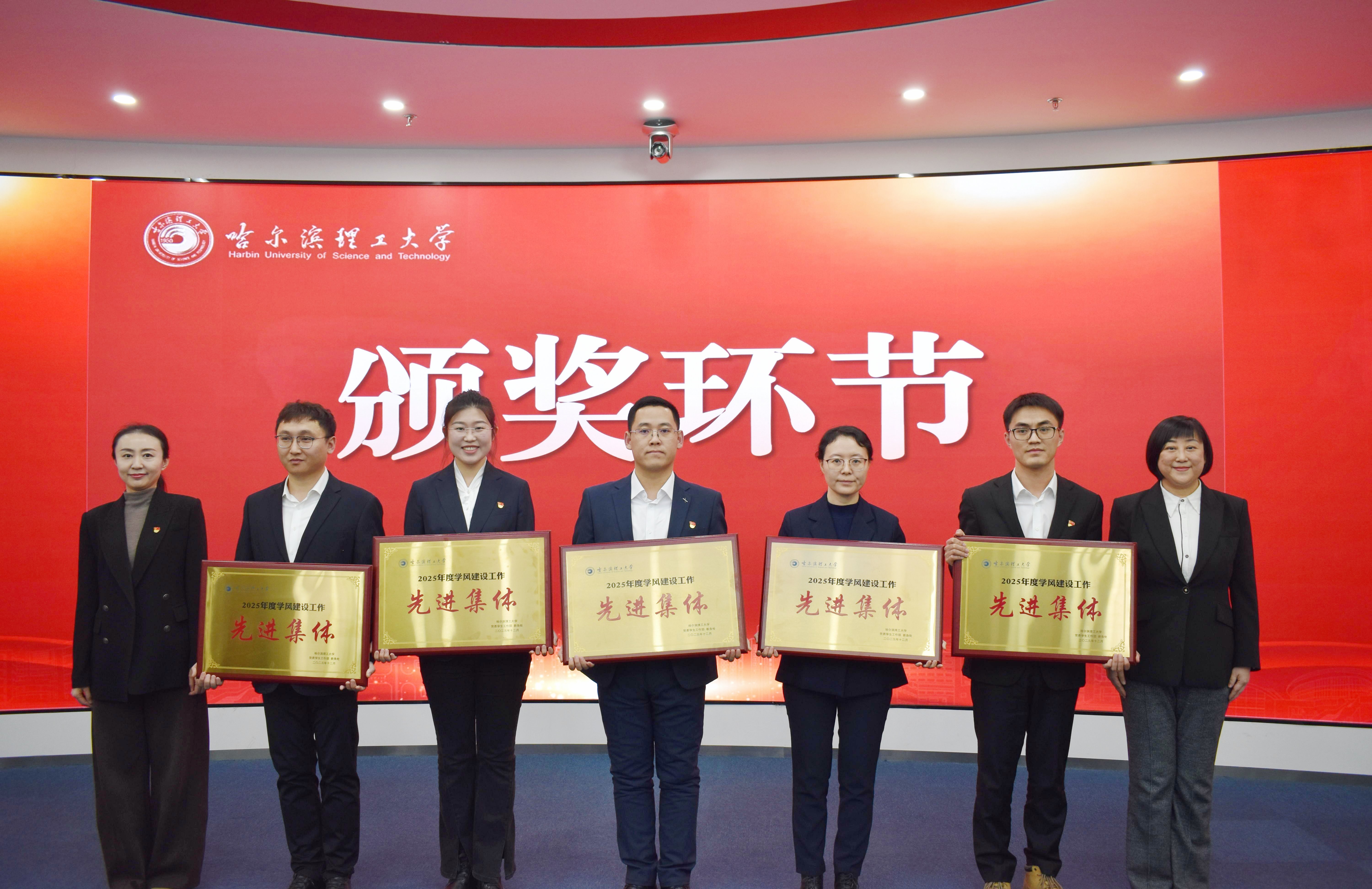 会议现场通过评委评审,对在年度学风建设中表现突出、成果显著、具有示范效应的先进集体予以表彰。电气与电子工程学院、机械动力工程学院、自动化学院、材料科学与化学工程学院、理学院等五个学院获评“哈尔滨理工大学2025年度学风建设工作先进集体”。