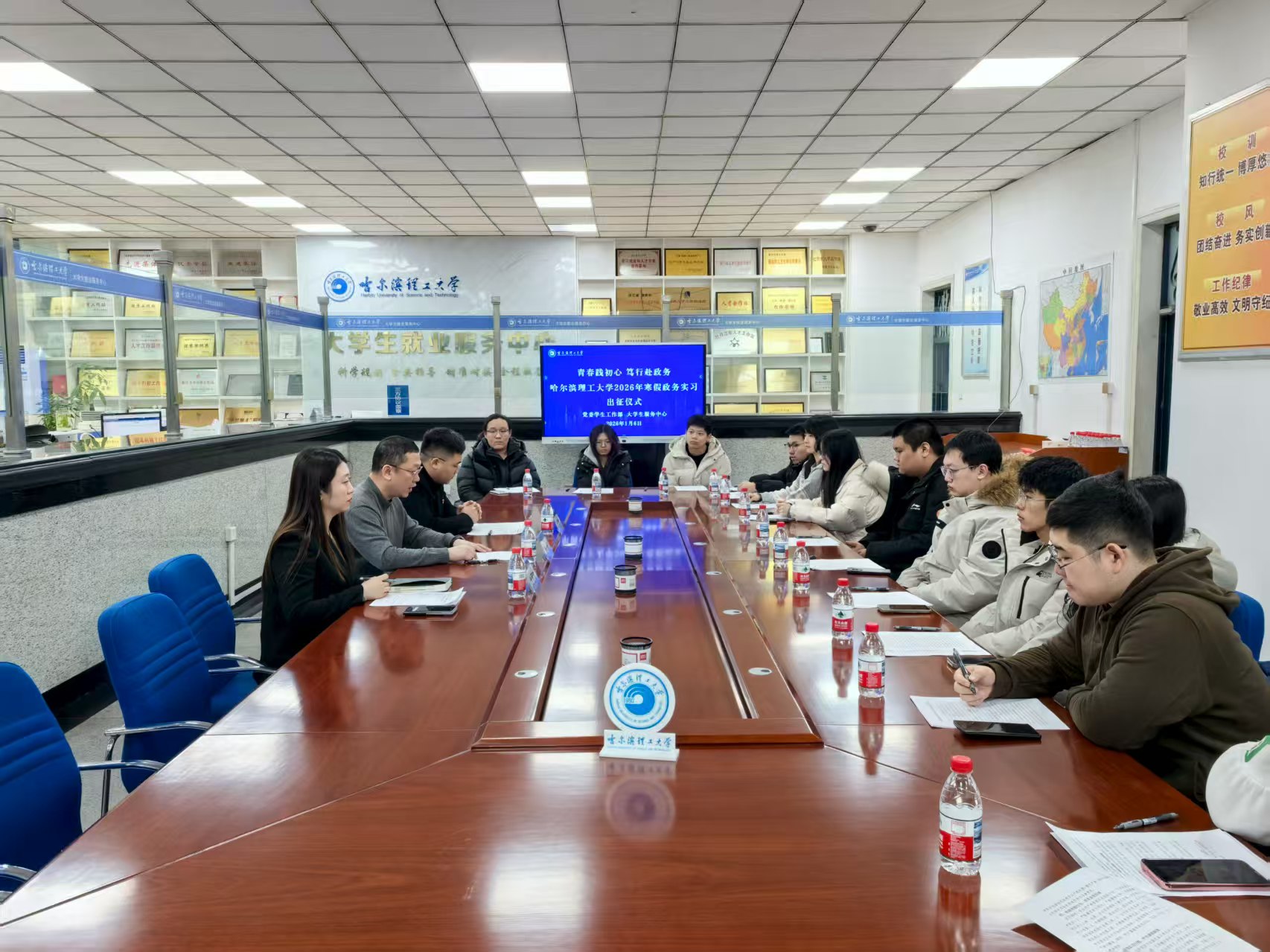 1月6日,学校“青春践初心 笃行赴政务”2026年政务实习出征仪式在西区1号楼205会议室举行。学校就业服务中心副主任崔征、就业市场服务科副科长姜其锋、金丽欢出席仪式,南岗区、鸡东县服务团全体实习生参加活动。
