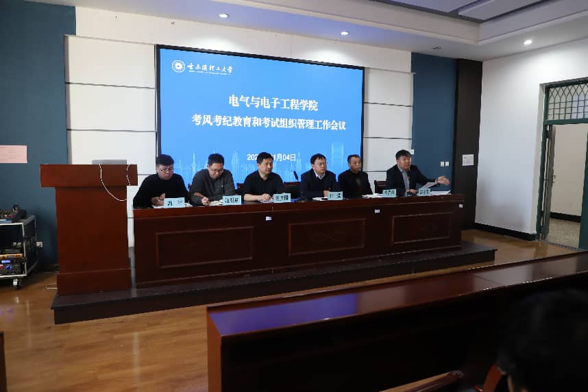 为全面贯彻落实学校《关于加强考风考纪教育和考试组织管理的通知》精神,进一步压实考试管理主体责任,营造公平公正、严谨有序的考试环境,1月4日下午,电气与电子工程学院在教学主楼G1012会议室召开全院教师大会,专题部署考风考纪建设及考试组织管理相关工作。学院领导班子成员、教学处学籍科王彦刚及全体教师参加会议,会议由学院党委书记刘骥主持。