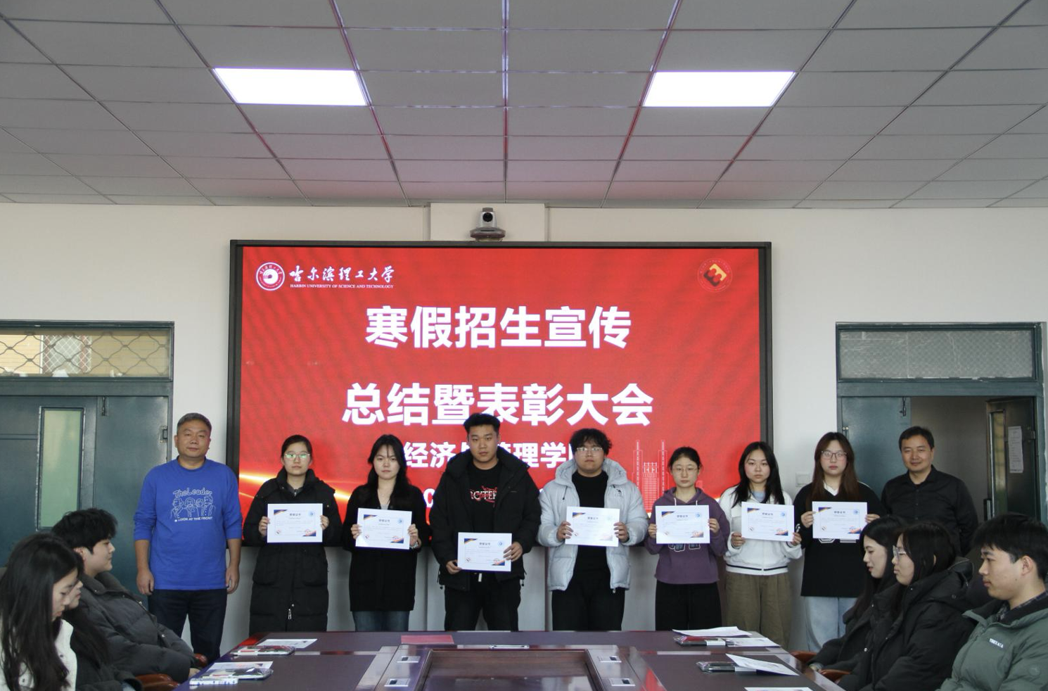 为全面总结2026年寒假招生宣传实践工作成效,表彰学院在实践活动中表现突出的优秀志愿者,进一步凝聚宣传力量、传承志愿精神、深化校地交流,做好本年的学院招生宣传工作。3月12日下午,经济与管理学院召开寒假返校招生宣传总结表彰大会。