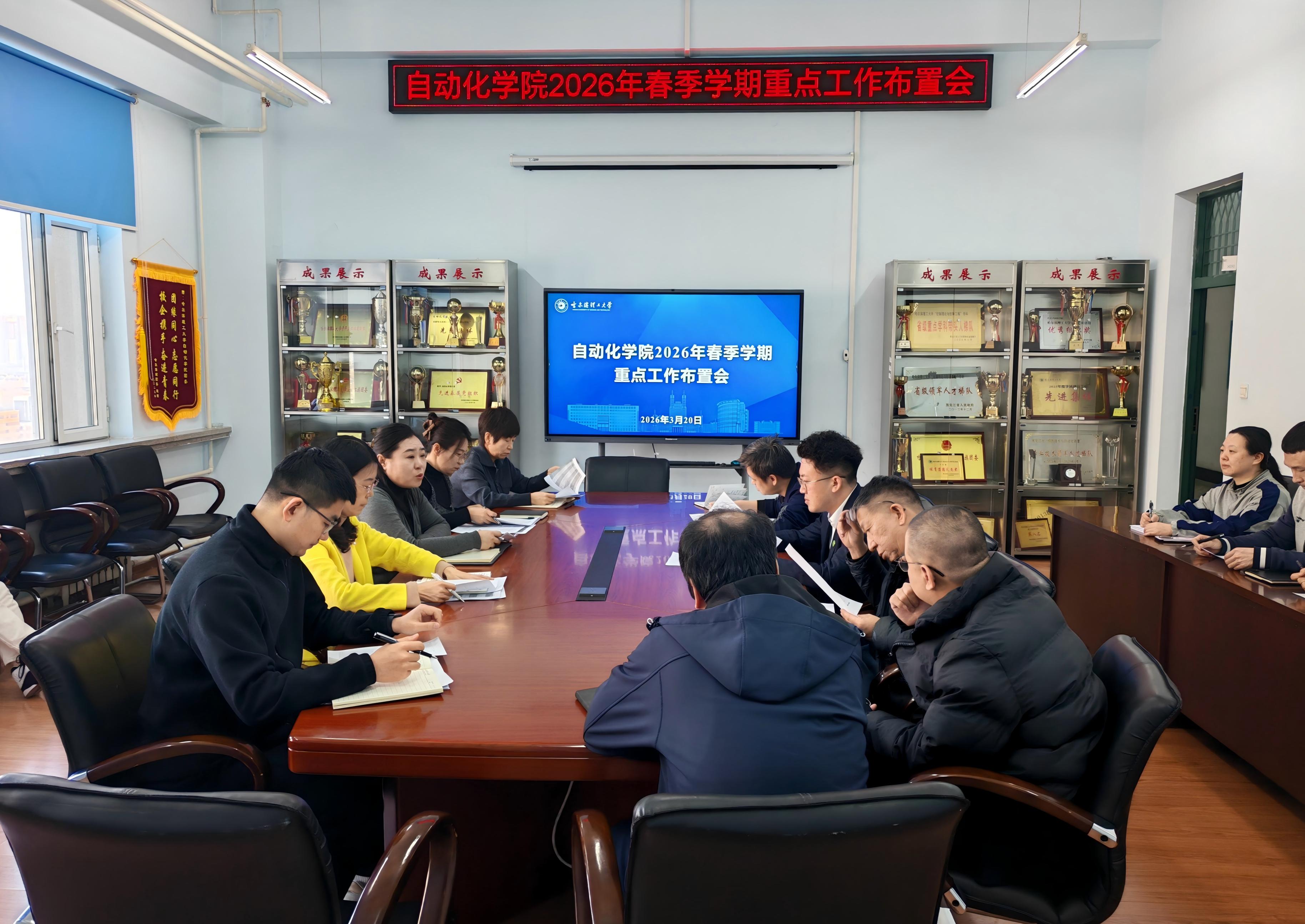 春启新程谋发展,实干笃行启新篇。为统筹推进2026年春季学期各项工作落地见效,明确工作重点、压实工作责任,3月20日下午,自动化学院召开2026年春季学期重点工作布置会,全面部署本学期就业、科研、教学、创新创业等重点工作。学院班子全体成员出席会议,各系部(中心)党支部书记、系主任、系副主任和辅导员参会,会议由学院党委书记张颖主持。