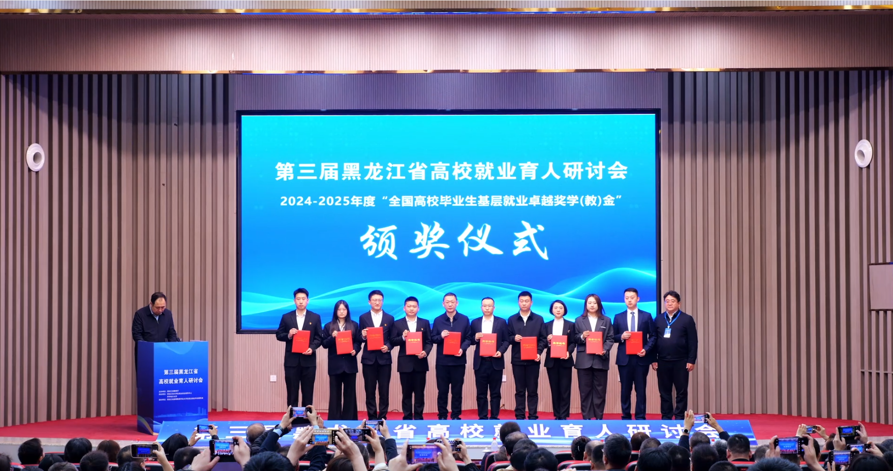 会议开幕式期间举行表彰仪式,崔征荣获2024-2025年度全国高校毕业生基层就业卓越奖,甄志勇受聘为第四届黑龙江省高校就业创业指导专家库专家。两项荣誉彰显了学校在基层就业引导、就业指导专业建设方面的扎实成效。
