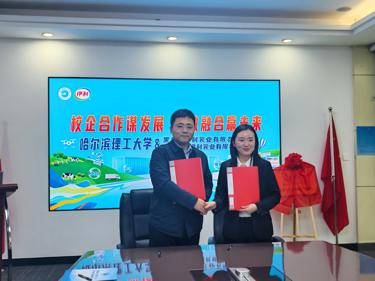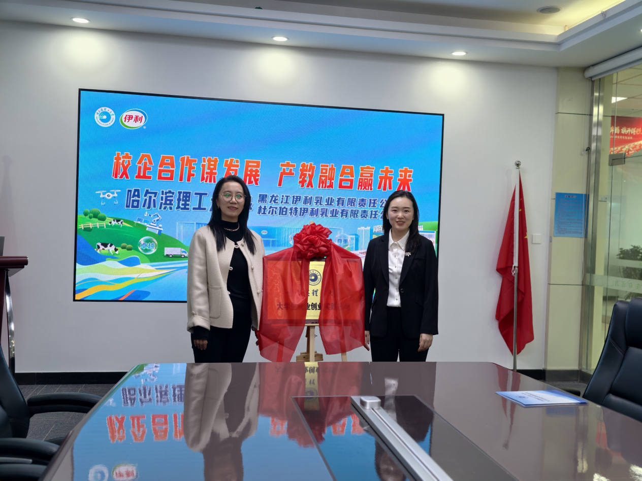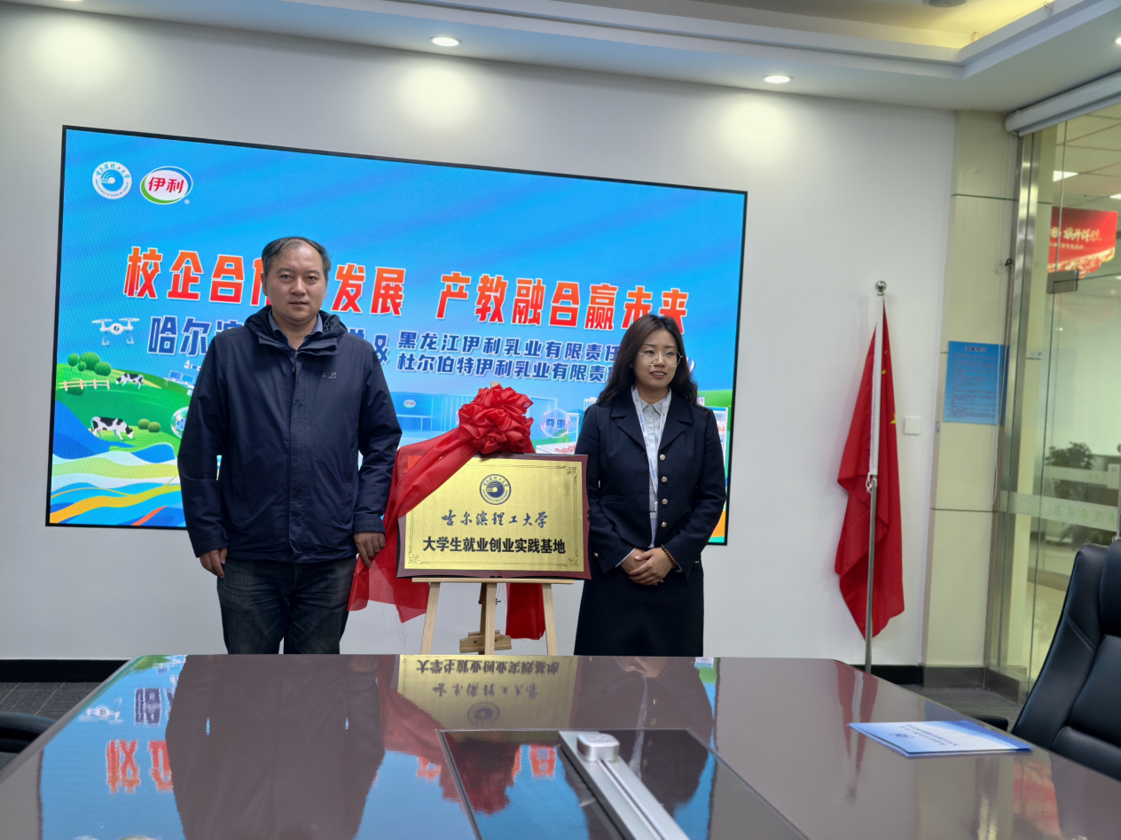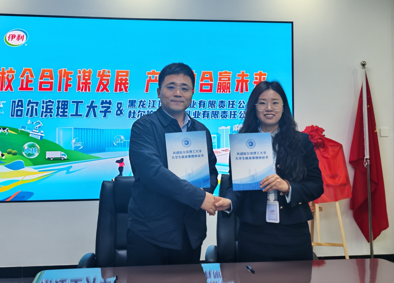 在黑龙江伊利乳业有限责任公司、杜尔伯特伊利乳业有限责任公司,走访团实地考察企业生产运营、企业文化建设及人才培养体系。座谈后,姜其锋分别与黑龙江伊利乳业人事行政经理杨静、杜尔伯特伊利乳业人事行政经理邓微签署共建大学生就业基地协议书;王冰与杨静、邬长明与邓微分别为“哈尔滨理工大学大学生就业创业基地”揭牌,标志着我校与两家企业在校企协同育人、毕业生就业、实习实践锻炼等方面进入常态化、规范化合作新阶段。