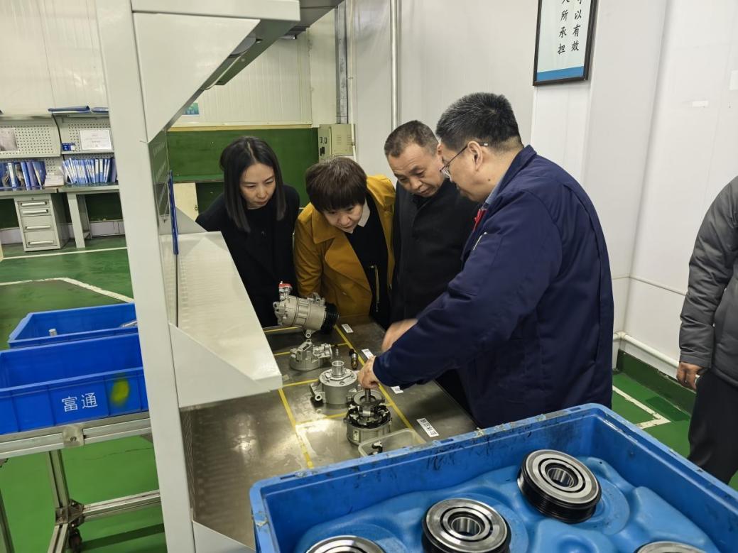 牡丹江富通汽车空调有限公司领导向调研组介绍产品