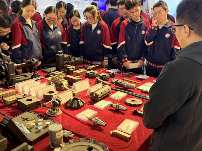 随后,同学们前往机械学院的工程训练中心与金属切削刀具馆。在机械学院岳彩旭院长的精心组织安排下,万泉副院长在工程训练中心为同学们做讲解,介绍工程实训的流程、意义以及工业机器人等高精尖设备的功效、原理,生动形象的语言、贴近学生生活的讲述方式,令同学们耳目一新、沉浸其中,同学们纷纷表示大开眼界,对机械专业亦心驰神往;在3D打印实验室,同学们在董泽煜老师的指导下,亲自动手操作,打印3D成品。在金属切削刀具馆,刘皓佗老师和同学们一起认识金属切削刀具的种类、功能与应用场景。从工业制造基础到先进加工技术,同学们在沉浸式体验中感受工程实践的严谨与创新,激发了对理工科专业的探索兴趣。
