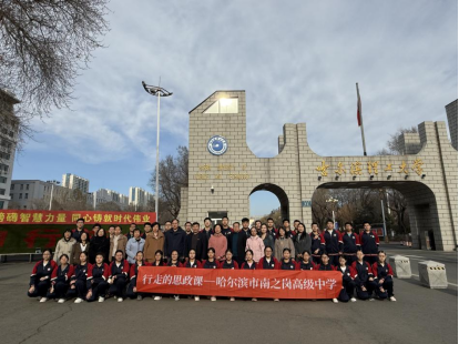 为深入实施新时代立德树人工程,贯彻落实立德树人根本任务,扎实推进大中小学思想政治教育一体化建设,将科学教育与思想政治教育深度融合,2026年4月23日,我校与哈尔滨市南之岗高级中学联合举办“科技+红色”研学暨思想政治教育一体化共建活动。南之岗高级中学党支部书记孙强、德育主任李拜、孙智慧及思政教师赵丽滨、韩丽、张博研,带领40名理科高二学生走进哈尔滨理工大学,开展研学实践与思政教育交流活动。我校马克思主义学院院长叶丽、党委副书记邬长明,我校大中小学思政课一体化研究中心首席研究员兼办公室执行主任、马克思主义学院德法教研部主任王晨,以及马克思主义学院教师王睿、尚淑敏、单莹、薛靖超,研究生志愿者房慧凝、刘泽辉共同参加了本次活动。