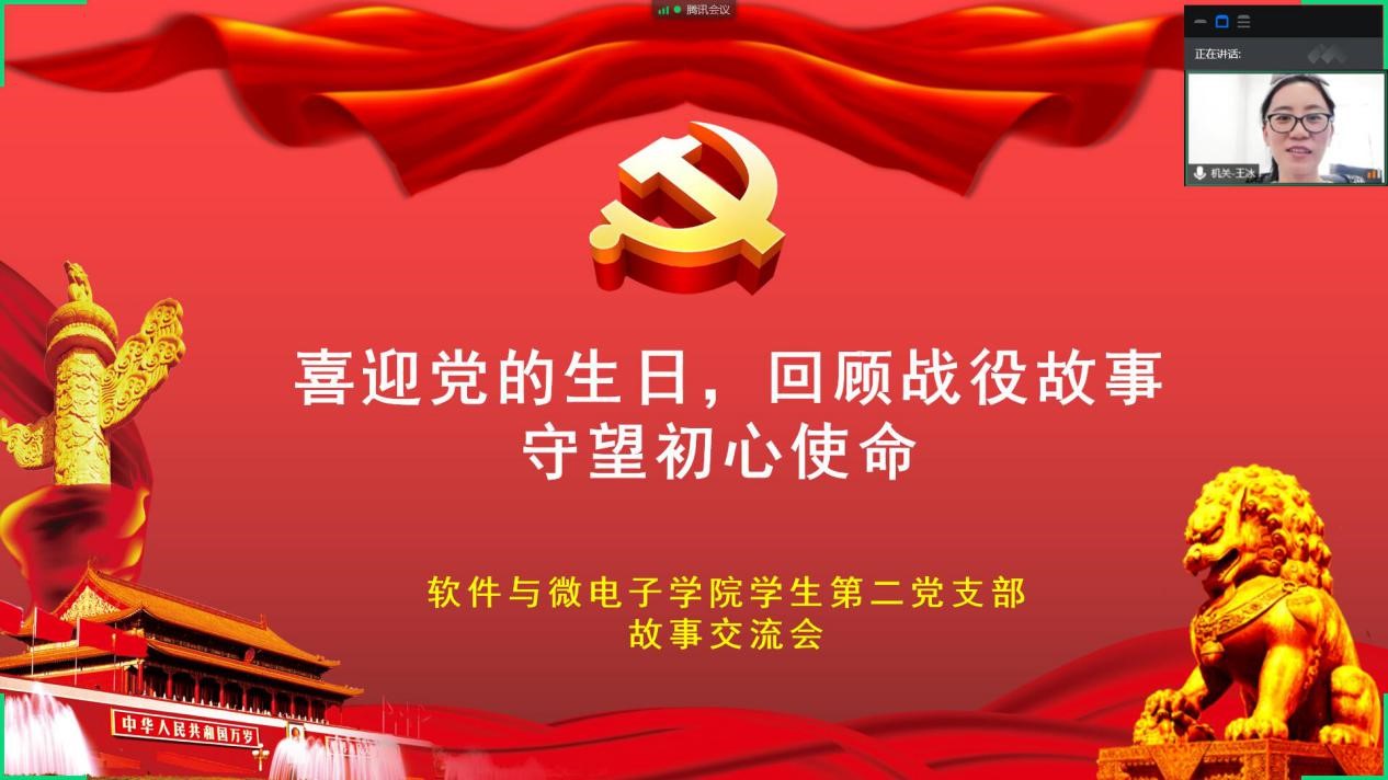 为庆祝中国共产党成立99周年,回顾党的光辉历程,讴歌建党、新中国成立以来取得的伟大成就,激发学生党员爱党、爱国、爱校的热情,构建和谐、向上的校园文化氛围;同时,借此机会,我们向这场疫情防控阻击战的最美逆行者致敬,讲述他们的战疫故事。依照我校党委的相关工作部署,软件与微电子学院学生第二党支部于6月30日上午开展以《喜迎党的生日 回顾战疫故事 守望初心使命》为主题的线上“战疫”故事组织生活会。