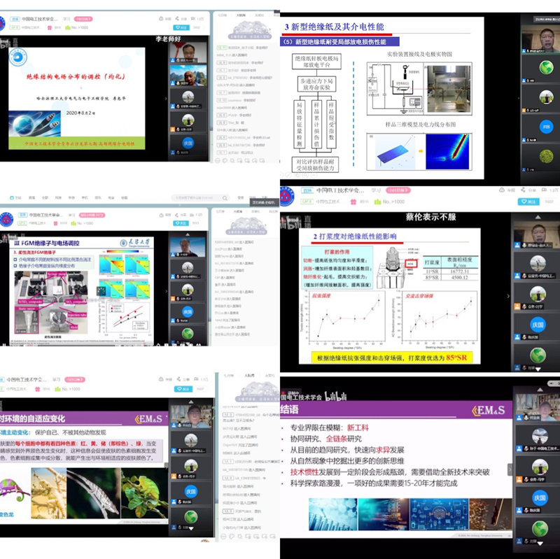 在嘉宾访谈环节,6位报告专家以及合肥工业大学丁立健教授、哈尔滨理工大学赵洪教授围绕着高场绝缘领域的近期研究热点展开了热烈的讨论,并分别回答了参与者的部分线上提问。访谈话题涉及到了高场绝缘中的暂态电场调控、高压直流电缆材料耐电强度提高、特高压换流变压器绝缘设计等关键科学问题和技术问题,研讨内容从基础理论、技术方法、研究体系到工程应用,为国内电工技术领域未来能拥有更多的自主核心技术提供了清晰的思路,为广大青年学者继续深入研究指明了方向。
