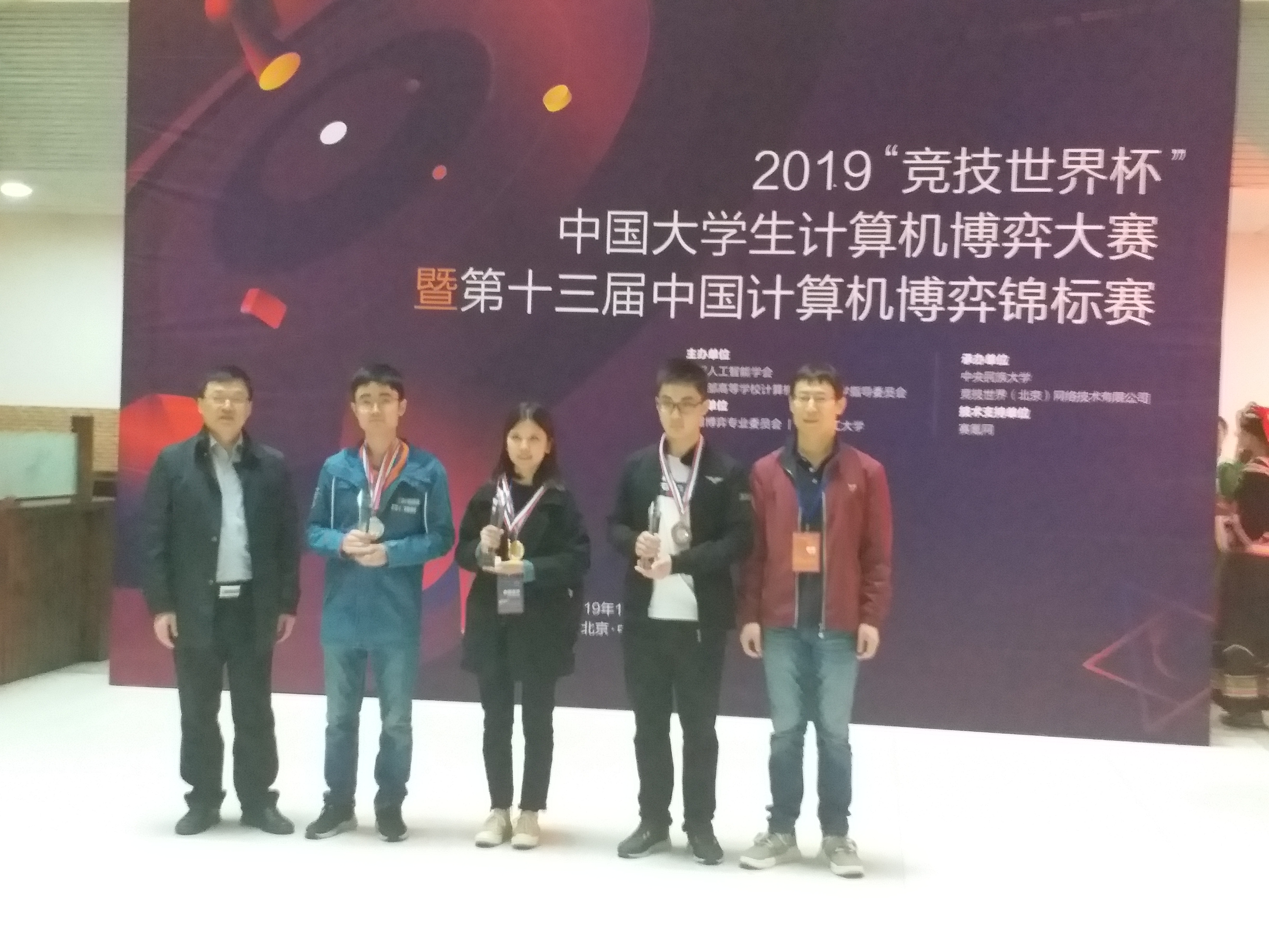 2019年10月13日,中国大学生计算机博弈大赛暨第十三届中国计算机博弈锦标赛落幕。本届大赛由中国人工智能学会和教育部高等学校计算机类专业教学指导委员会等部门共同主办。现场来自全国五十多所高校和研究机构的近三百支队伍前来参加决赛。在学校领导、教务处等部门的大力支持下,赛前我校计算机科学与技术学院计算中心的创新实践中心组织计算机博弈教研组的多位竞赛指导老师对全校各学院近二百名报名学生进行了培训,经过计算机博弈系列选修课对局积分、校计算机博弈赛选拔和组队集中开发等教学培训,最终选拨了6个程序系统参赛。经过分组赛和决赛等环节,最终获得全国大赛一等奖1项(3人)二等奖2项(6人)、三等奖3项(9人)的优异成绩。其中爱恩斯坦棋项目获得亚军奖杯,是参赛以来我校取得的最好成绩。