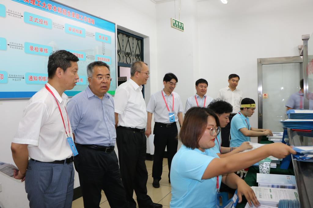 7月20日上午,学校党委书记张洪涛、校长赵琳共同来到招生录取现场,检查指导2019年招生录取工作并慰问招生录取工作人员。学校办公室主任郗朝晖陪同慰问。
