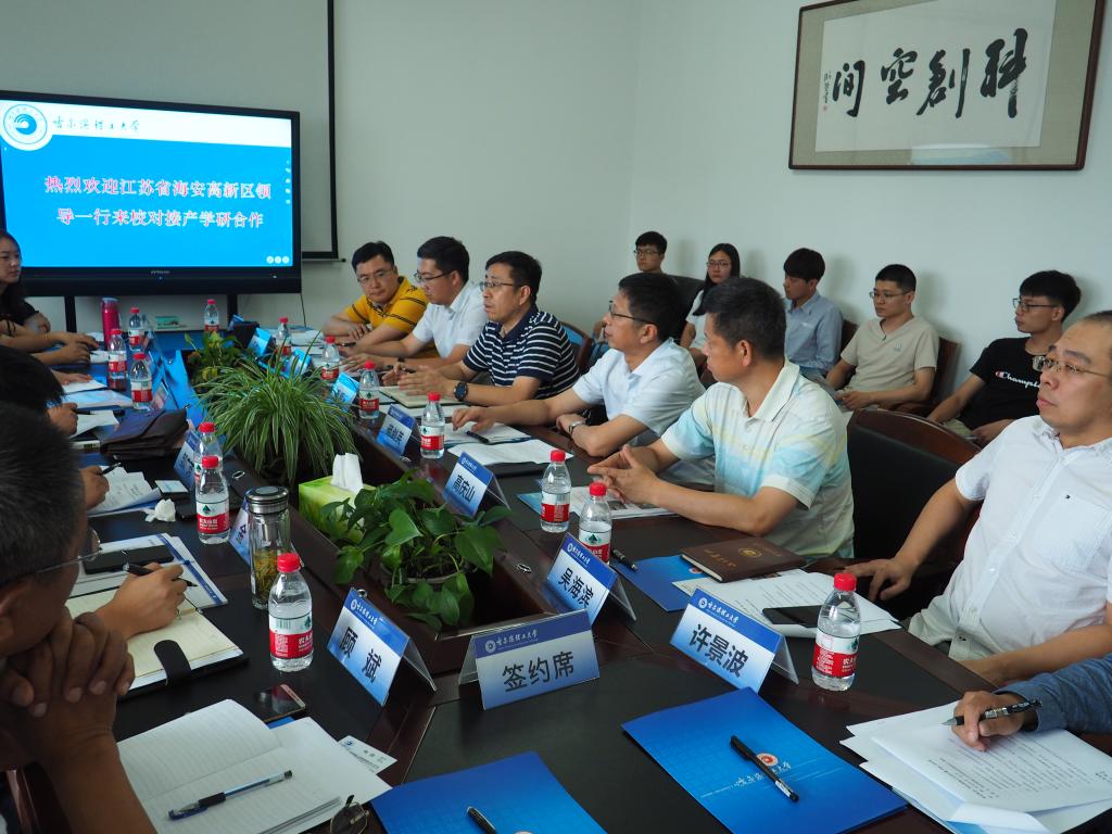 海安高新区仲浩然副主任对学校的热情接待以及哈理工一直以来对海安高新区产业发展的支持表示由衷感谢。他从海安市的优势区域位置、高科技产业研发基地、高水平科研平台及区分不同层次人才引进的特色政策等方面详细介绍了海安市发展情况。他表示,期待海安高新区能够与哈理工建立更紧密的政产学研合作,欢迎哈理工在海安建立研究生实训基地,欢迎哈理工的学子来海安就业,更欢迎哈理工专家团队的科技成果能够在海安高新区落地转化。