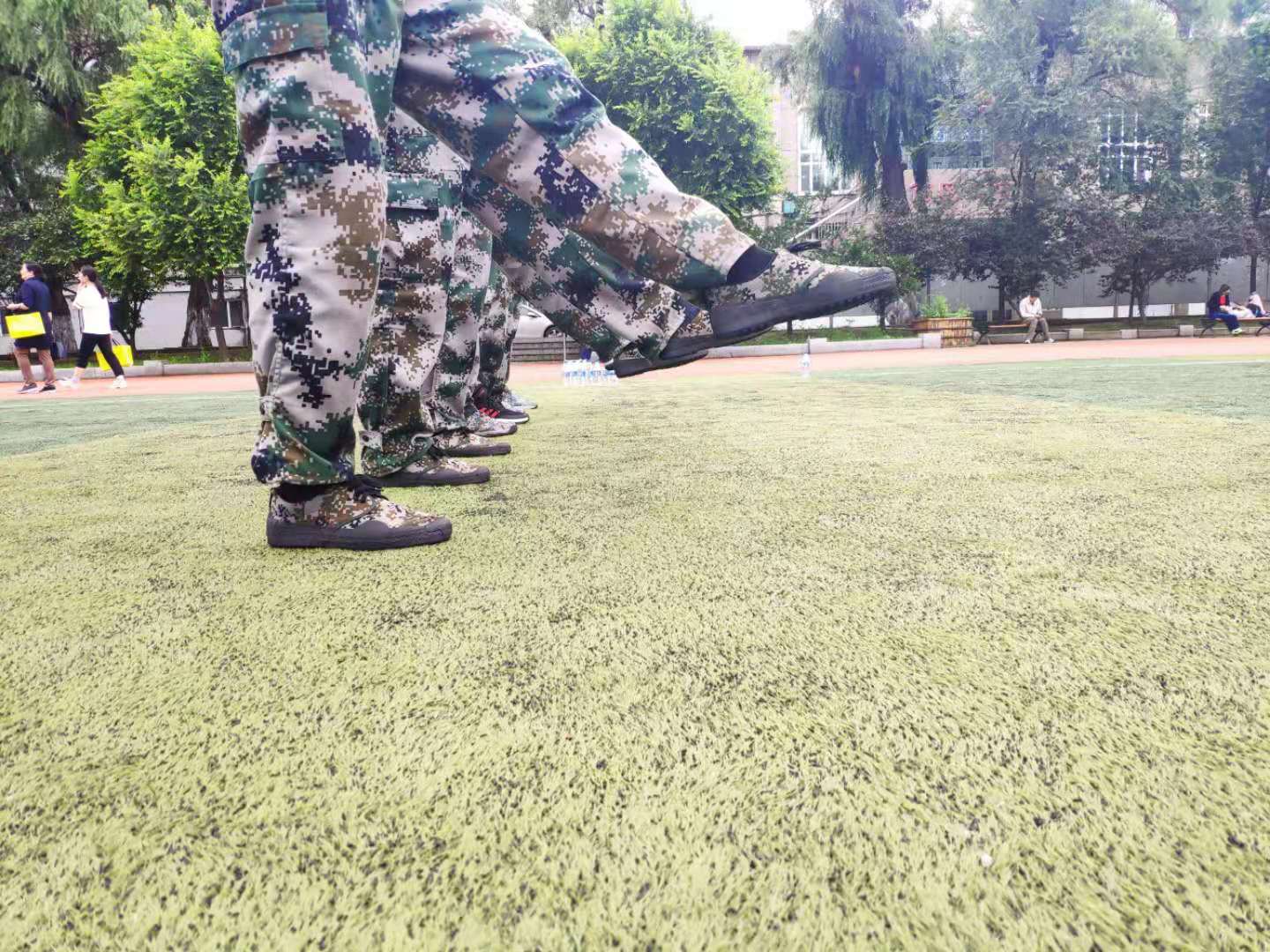 暑期的校园里,增添了一道亮丽的风景。有这样一支队伍,一身戎装、精神饱满、斗志昂扬,响亮的口号、铿锵的步伐、标准的动作、嘹亮的歌声……
