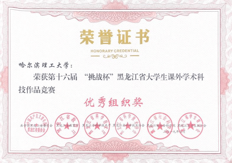 “挑战杯”系列赛事被誉为中国大学生科技创新创业的“奥林匹克”盛会。日前,由共青团黑龙江省委、黑龙江省教育厅、黑龙江省科技厅、黑龙江省科协、黑龙江省社科院、黑龙江省学联主办,哈尔滨商业大学承办,中国工商银行黑龙江省分行、龙广高校台参与协办的第十六届工银融e联“挑战杯”黑龙江省大学生课外学术科技作品竞赛落下帷幕。我校获得一等奖5个,二等奖9个,三等奖9个,并有3项作品入围全国决赛,成绩居全省前列。我校获优秀组织奖,戴野、于雪莲、张浩男、张文龙、戴亚杰、岳彩旭、张大为、刘立柱8位老师获省赛优秀指导教师。