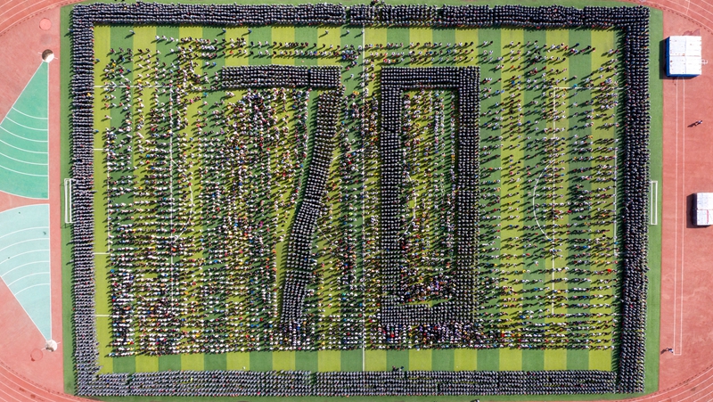 万名学生方阵组成“70”字样