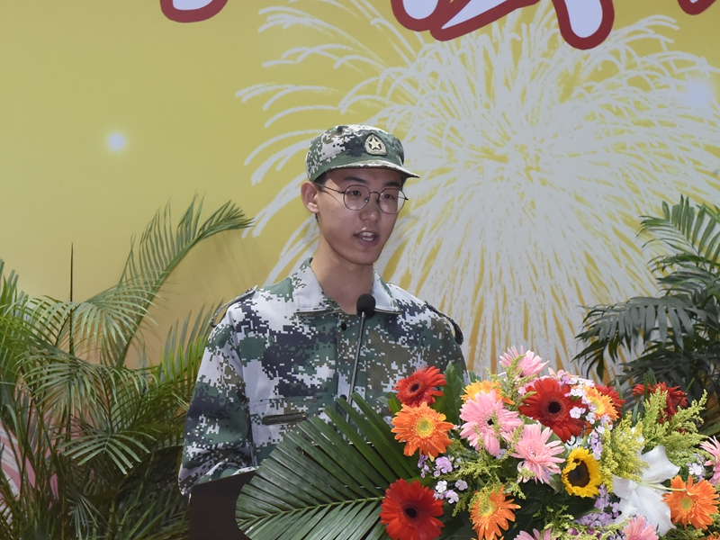 软微学院2017级王文卓同学作为在校生代表发言。他代表全校同学向来自祖国各地的2019级新同学表示最诚挚的问候和最热烈的欢迎。他祝愿2019级新生们在孜孜不倦的追求中成为时代潮头的“王者”,在荣校报国的理想中担当时代重任,勇做“知行统一、博厚悠远”的青春理工人!