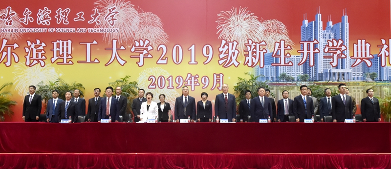 赵校长告诫同学们,要在未来的几年中充分利用学校提供的一切有利条件,不负青春,不负韶华,度过精彩和美好的理工时光,同时对2019级新生提出四点希望:一是希望同学们树立爱国之志。青春逢盛世,奋斗正当时!希望同学们承担起青年一代应有的重任,担负起伟大复兴“中国梦”的责任和使命,立志做大事,胸怀大格局,与时代主题同向同行,努力成为服务国家和区域经济发展的栋梁之才!二是希望同学们涵养爱校之情。明年9月,哈尔滨理工大学将迎来70岁生日。从走进哈理工的那一刻起,同学们就已经成为了“哈理工人”,与千万校友共同分享理工人的荣光,担负理工人的使命。以理工为家,为理工增彩,不断提升自己的人生境界!三是希望同学们不忘勤学之本。请摒弃“玩命的中学、快乐的大学”的幻想,进入大学绝不代表万事大吉、高枕无忧。毕业的底线、学业的红线不可触碰,高等教育“严起来,难起来,实起来,忙起来”的时代已经来临。要勤学本领,百炼成钢。四是希望同学们铸就精彩人生。希望同学们顺应德智体美劳“五育并举”的时代要求,在勤勉学习的同时以德育修身明理,以智育推动创新,以体育强健体魄,以美育完善人格,以劳动创造未来。