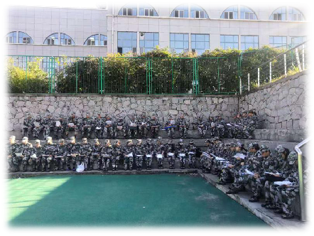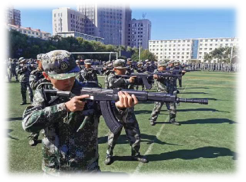 2019级新生军事技能训练内容丰富:条令条例教育、队列、内务、纪律、捕俘拳、捕俘刀、棍术、特种战术,等等。对于因身体原因不适合训练的学生,采取现场见习的方式,学习军事技能训练及国防教育相关知识(结束时进行理论考核)。学员们训练热情高涨,流汗不流泪、轻伤不掉队,招招见功夫、式式见本领。训练场上,口号响亮、歌声嘹亮,步伐雄健、英姿飒爽。