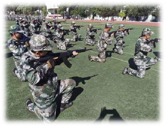 训练场上刻苦训练的理工学子
