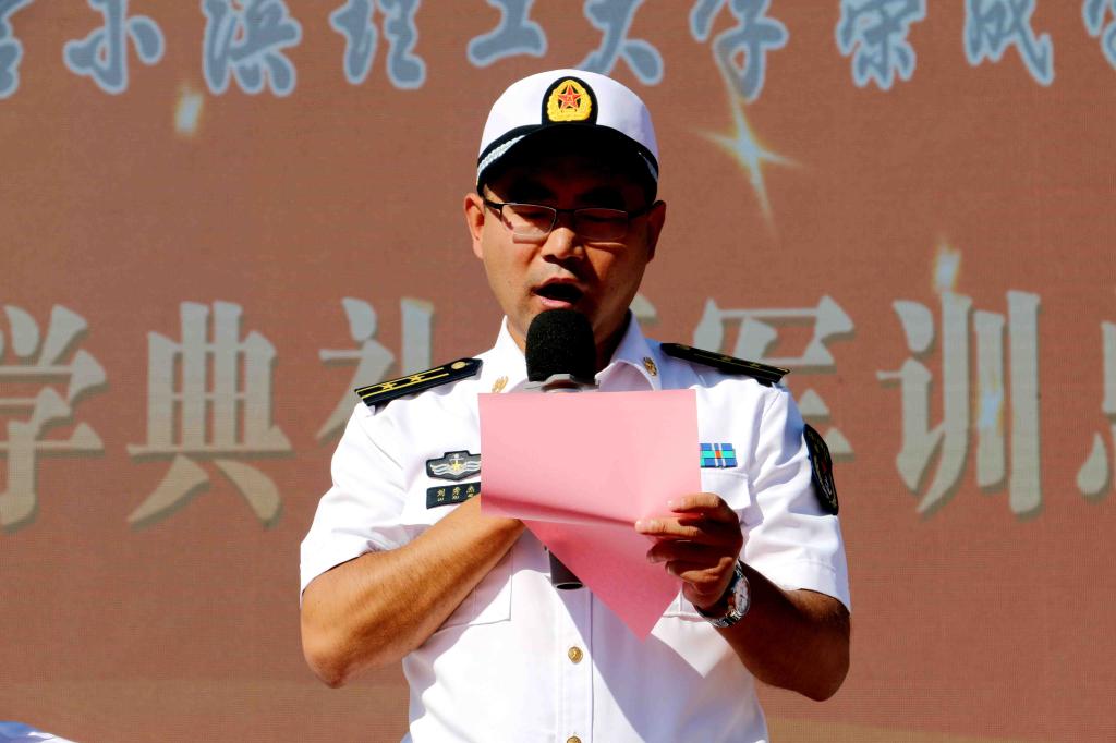 荣成学院党委书记刘云峰宣读2019年新生军事训练优秀连队名单
