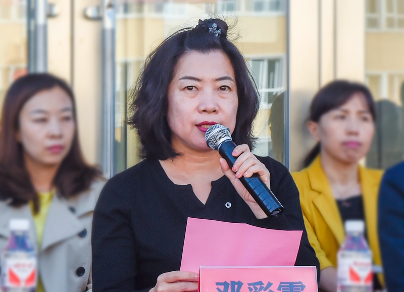 邓彩霞会长代表女博士联谊会致辞。她指出,为深入贯彻落实习近平总书记提出的“扶贫先扶志”的理念,帮助新立村的贫困户学生顺利完成学业,助力新立村精准扶贫、精准脱贫,学校女博士联谊会第三次来到丰乐乡康庄学校,举办“青春告白祖国”扶贫助学活动。联谊会曾于2017年10月筹集善款34200元,共资助贫困户学生100余人次。本次扶贫助学活动共资助学生17人,发放助学金10000元。她希望联谊会的善心义举传递给更多的爱心人士,为巴彦县的脱贫攻坚工作做出更大的贡献。