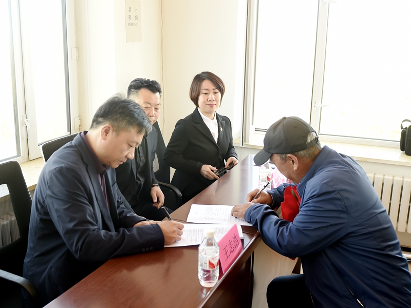 校党委副书记王志浩与新立村党支部书记于贵发签署捐赠协议