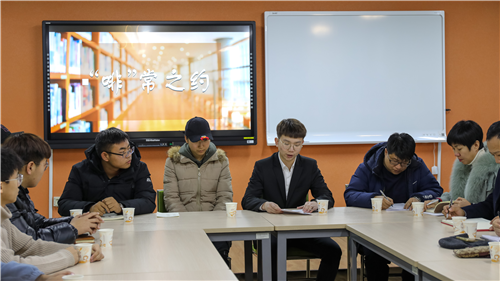 11月20日15:30,我校第五期“啡”常之约在国家大学科技园535室举行,学校领导通过学生会组织主动约请同学们召开专题座谈会,校长赵琳和来自全校各学院的2019级新生代表座谈,校党委副书记陆岩出席座谈会,学生工作处处长杨忠学、教务处处长宋清昆、后勤管理处处长安文斌、保卫处处长范洪涛、校团委书记姜国玉、外国语学院副院长马艳辉、2019级新生班主任代表参加座谈。座谈会由校学生会主席张喆主持。