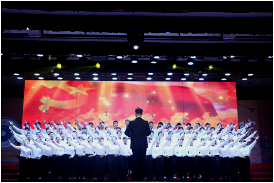 随后,荣成学院在文体中心举行了“心向党 担使命 我与祖国共奋进”一二九运动84周年合唱比赛。全院共选派9支代表队,合计19个节目,近千名学生参与其中。大学生艺术团和院学生会首先带来优美的开场舞《彩云追月》,拉开比赛帷幕。食品工程系的《光荣与梦想》、《我和我的祖国》歌声嘹亮,激励我们将个人梦想与中国梦紧密联系;电气工程系《在灿烂的阳光下》、《歌唱祖国》咏唱新时代和新梦想;经济管理系意气风发的诠释《龙的传人》,用《光荣与梦想》歌颂祖国的伟大;软件工程系的《大海啊故乡》表达了对祖国母亲的热爱,《走向复兴》号召同学们一起努力,共同前行;大学生艺术团一曲《红梅赞》演奏出革命先烈们“不畏严寒,傲雪怒放”的坚贞和坚强不屈的革命气节;外语系的《没有共产党就没有新中国》和《不忘初心》,用洪亮的歌声歌唱中国共产党的伟大,振奋人心,将比赛推向高潮;机械工程系的《我们走在大路上》和《中国进行曲》诉说着祖国儿女奋斗的历程;艺术系的《天路》带着高昂的情绪赞颂我们敢向天问路的精神,献唱《祖国不会忘记》表达学子们对党和国家的无限深情;建筑工程系的《我的中国心》用浓郁饱满的热情和高亢激昂的状态表达自己的爱国之情,《骄傲的少年》号召同学们用自己的努力谱写灿烂的青春华章;院级学生组织的《天耀中华》表达了对祖国未来的无限展望与无限期待,让我们更加期待更美好的明天。