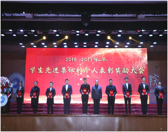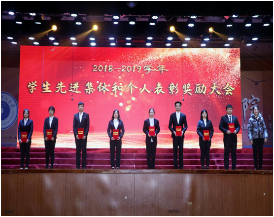 在会上,主题教育学校第五巡回指导组副组长高恩宝、学院常务副院长杜野和副院长张桂华分别宣读了2018-2019学年学生先进集体和个人表彰决定。在2018-2019学年度,荣成学院认真贯彻执行党的教育方针,逐步构建“112345”大学生思想政治教育工作模式,树立1个育人理念,抓住1个工作核心,围绕2条工作主线,探索3种工作机制,坚持4项工作原则,建设5项特色重点工作,在各项活动中涌现出一批表现突出、成绩显著的先进集体和德、智、体、美、劳全面发展的优秀学生。3名同学荣获“TI杯”2019全国大学生电子设计竞赛一等奖;3名学生荣获2019美国大学生数学建模竞赛一等奖,18名学生荣获二等奖;3名同学荣获“学创杯”全国大学生创新创业综合模拟大赛一等奖;3名同学荣获第九届全国国际贸易职业能力竞赛特等奖,9名学生荣获全国二等奖;《基于HVD和样本熵的滚动轴承故障诊断研究》荣获第十六届“挑战杯”全国大学生课外学术科技作品竞赛黑龙江省二等奖;2名同学荣获“外研社”杯全国大学生英语系列赛山东省专业组特等奖;1名同学荣获专业组和非专业组特等奖,2名同学荣获山东省非专业组特等奖;5名同学荣获第十五届全国大学生“新道杯”沙盘模拟经营大赛中二等奖;2名学生荣获全国大学生数学竞赛一等奖,14名学生荣获二等奖,15名学生荣获三等奖;27名学生荣获东北三省数学建模联赛一等奖,15名学生荣获省二等奖,15名学生荣获省三等奖;12名学生荣获全国大学生数学建模竞赛黑龙江赛区一等奖,24名学生荣获二等奖,12名学生荣获三等奖;2个团队荣获山东省暑期社会实践优秀团队、4名学生荣获先进个人称号;36个班级荣获校级学生先进集体;1062名学生荣获校级先进个人;1名同学被评为学校“菁英学子 理工之星”标兵,5名同学和1个集体被评为“理工之星”;7名学生被评为学院自强自立先进个人;9个寝室被评为学院五星级寝室;123名同学在公开出版期刊发表论文80余篇。之后,与会领导为以上获奖集体和个人颁发了荣誉证书。学生代表土木17-3白惠中同学发言,他表示面对未来的挑战,理工学子更应该拿出青春的朝气与热情,迎接风雨的磨砺,创造人生的辉煌。