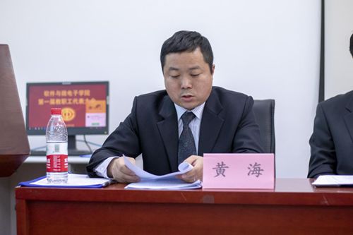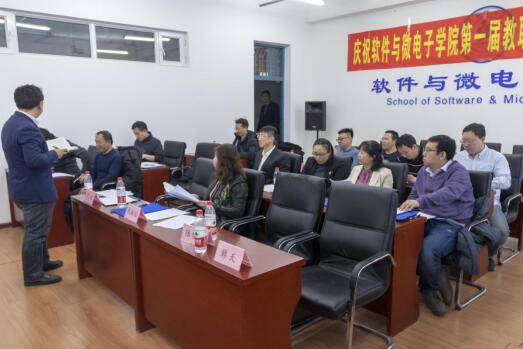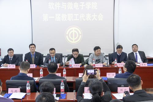 12月13日下午,软件与微电子学院第一届教职工代表大会在新主楼E1612会议室顺利召开。大会会场气氛庄重而热烈。副校长刘胜辉出席大会开幕式并致辞,校工会副主席李少先出席大会开幕式,学院第一届教职工代表参加了会议。大会由学院党委书记肖庆生主持。