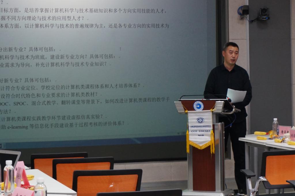 第四位做引导发言的是哈尔滨理工大学计算机科学与技术学院副院长唐远新副教授,题目是“地方高校计算机类应用型本科人才培养的探索与实践”。他分享了在地方高校或省属高校的环境下如何做好本科生教育,特别是在“我是谁、为了谁、依靠谁”等问题的思考,指出不能做旁观者,而是要长期坚持、不断改进,才能取得好的专业建设效果。