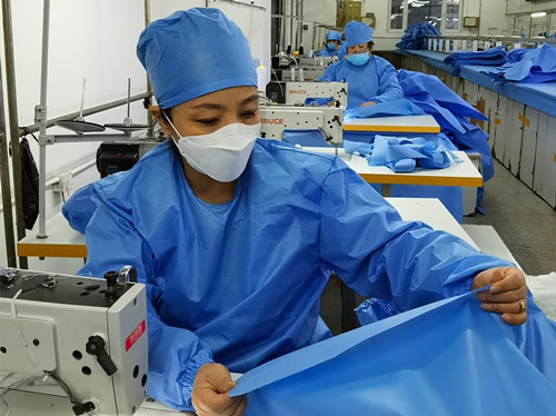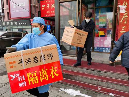 黑龙江洪岩服饰有限公司成立于2005年,主要从事服装设计、加工和生产,同时批发兼零售鞋帽、面料辅料、针纺织品等商品。新冠疫情发生后,2月1日,于洪岩总经理积极响应市市场局号召,紧急动员并派遣12名员工支援同行企业的隔离服生产工作。同时,组织公司其他员工,按照生产标准,迅速购置设备、改造车间,经市质量技术监督局验收合格,获得生产许可证后,于2月14日开始全面投入到隔离服生产中。作为我省疫情防控物资重点保障企业,黑龙江洪岩服饰有限公司婉拒了政府给予的转产设备投入和员工加班补贴,并陆续将已生产的近万套隔离服捐赠给了哈尔滨医科大学附属第一医院、医大附属第二医院、肿瘤医院等医院,为我省的新冠疫情防控工作做出了应有的贡献。