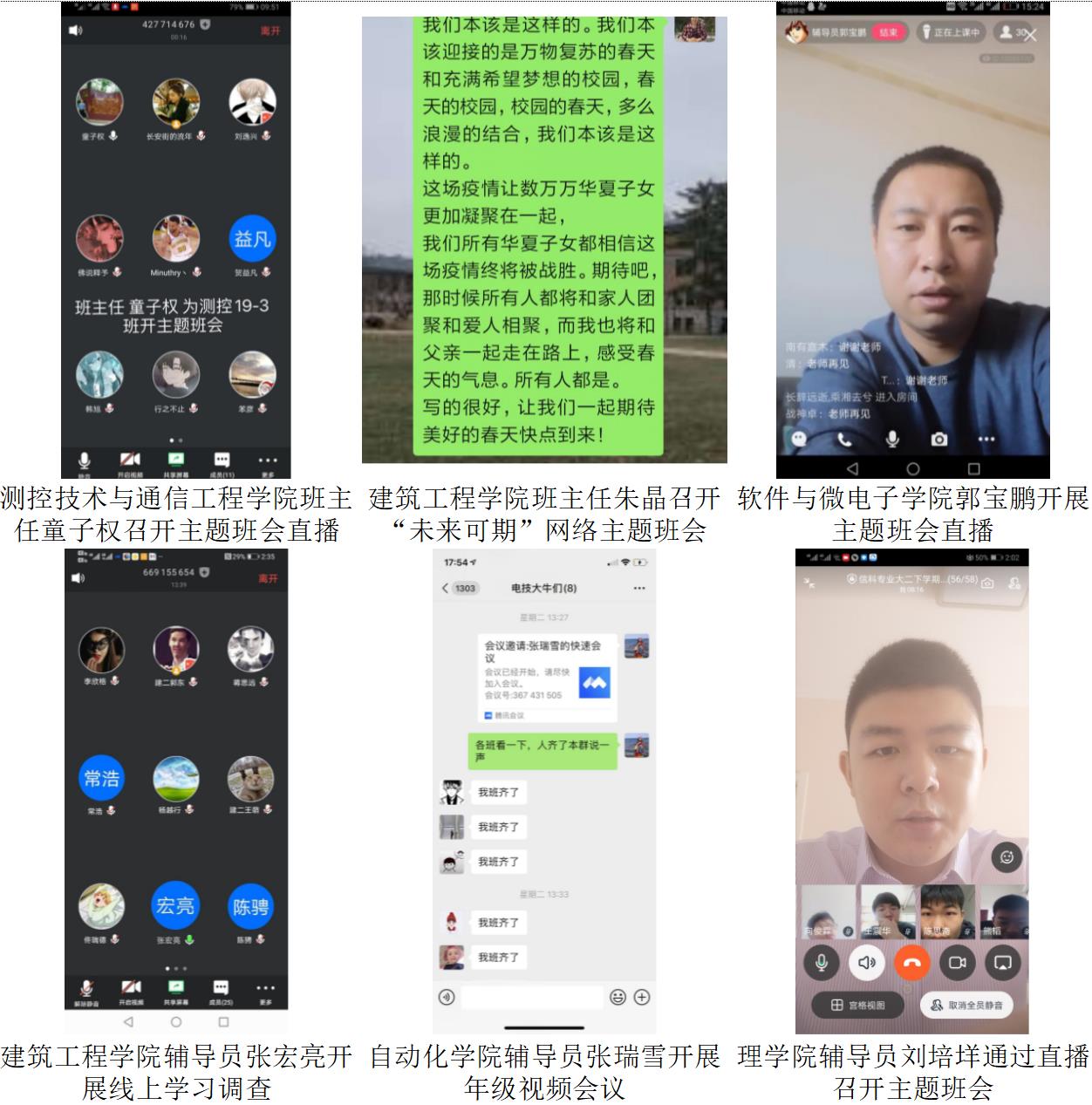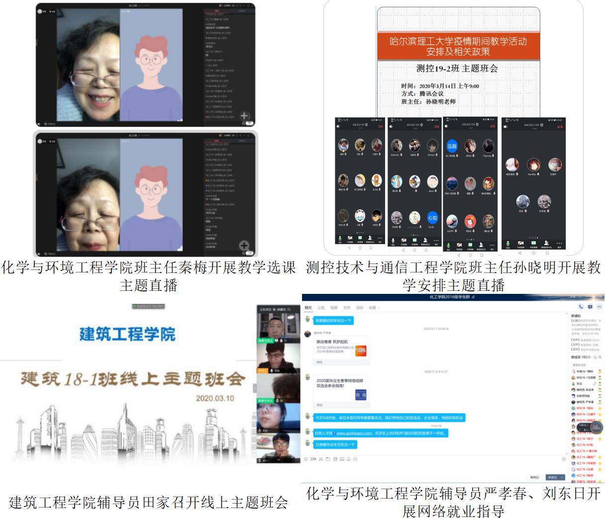 为迎接我校2020年春季学期3月16日“开学日”,哈尔滨理工大学辅导员、班主任为配合教学单位保障教学进度和教学质量,有效落实《关于开展在线教学活动的学生管理意见》,开展“云办公”、预演“云管理”,召开网络主题班会,引导学生调整状态,整装“宅学”设备,增强线上学习的责任意识、主动意识和自律意识,与学生同心战“疫”。