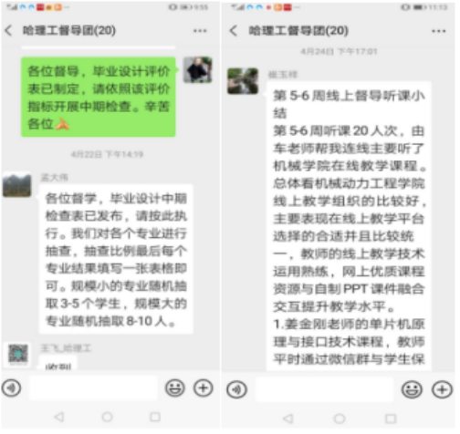 为了贯彻落实教育部和省教育厅在疫情期间“停课不停教,停课不停学”工作部署,学校出台了《哈尔滨理工大学关于做好延迟返校期间在线教学组织与管理工作的指导意见》等相关文件,并于3月16日全面启动本科在线教学模式。为确保在线教学质量和效果不打折扣,实现线上线下教学质量同质等效,高教研究与教学质量评估中心实施多措并举,统筹协调校院两级在线督导工作,不断加强在线教学质量监控力度;校院两级督导团分工协作,精心准备,充分学习现代信息技术,多次培训、反复操练、不断实践,基本实现对“三大平台”(超星、智慧树、中国大学MOOC)及其它平台的线上教学课程听课(看课)全覆盖,让云端教学落地生根。截止目前,校级督导团共听课717人次,发现亮点63项,具有代表性的问题33项,提出改进建议32项,完成督导工作小结5篇;二级学院督导组结合各自学院的情况深入课堂听课(看课),参加学院及系部组织的研讨会、交流会,解决教学实际问题。