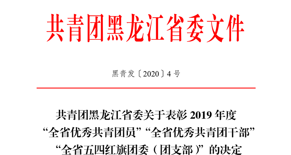 黑龙江团省委发布《关于表彰 2019 年度“全省优秀共青团员”“全省优秀共青团干部”“全省五四红旗团委(团支部)”的决定》