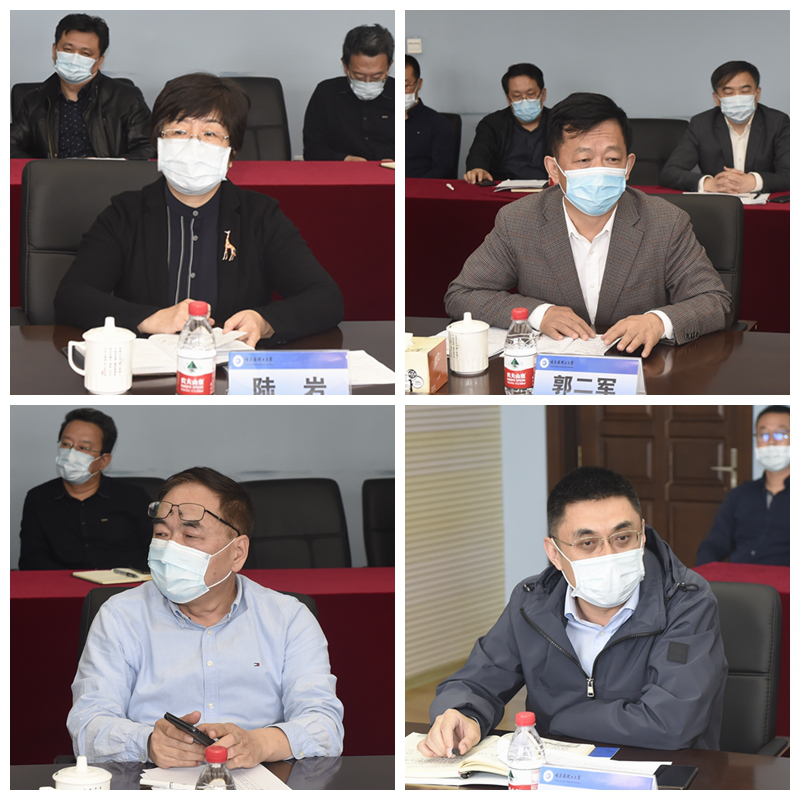 与会校领导陆岩、郭二军、刘胜辉、刘侠陆续发言,从全力保障2020届毕业生顺利毕业、邮寄毕业生个人物品、疫情常态化下的校园疫情防控工作、在线教学、食堂就餐等方面及各自分管工作进行了补充。