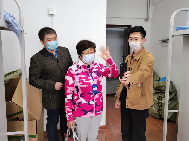 在寝室邮寄整理现场,陆岩副书记借助辅导员与学生微信视频直播邮寄的契机,与同学们进行了“云见面”,隔空送上了学校的毕业祝福。陆岩副书记在视频交流时表示,学校始终把同学们的生命安全和身体健康放在首位,特殊时期学校制定了一系列离校工作保障方案,在满足未返校同学们实际需求的同时,也将通过“云毕业典礼”等方式,与同学们共忆校园时光,憧憬美好未来。虽现有遗憾,但希望同学们与学校一同前行,待到明年春暖花开时荣归母校,再赏校园景,重温同窗谊,共叙师生情。视频连线的同学表示,感谢学校及学生之所及,尽师者之所责,在特殊时期解决了未返校学生们的实际需求,也期盼着在合适时机重返母校,与老师和同学们相聚在校园广场,共享惬意时光。同时,也将感恩母校,传承校风,时刻展现理工学子的风采。