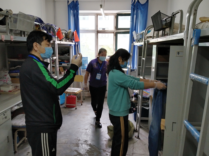 6月1日上午,校党委副书记陆岩带领学生处处长杨忠学、副处长蔡野,研究生部副主任张辉等相关部门负责人,分别到学校西区本科实训楼、学生八公寓、学生三公寓等处检查指导学校近日开展的2020届毕业研究生个人物品邮寄工作,同时看望慰问奋战在邮寄工作一线的教职员工,并与学生视频连线送去学校的关怀与祝福。