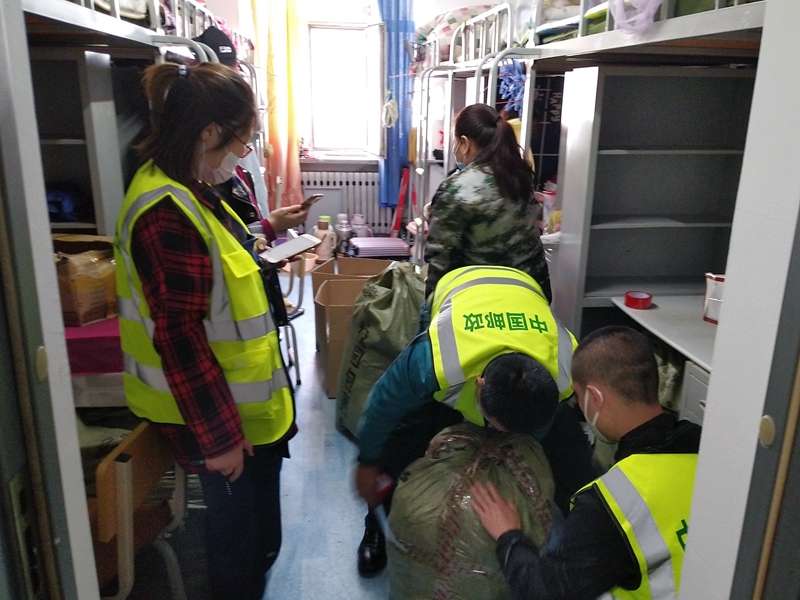 据悉,本次2020届毕业研究生个人物品邮寄工作是学校按照省教育厅的相关指导精神,结合我校实际,针对未返校学生的离校需求而制定的相关保障方案。邮寄工作由学生处牵头,研究生部、保卫处、后勤管理处、相关二级学院等单位协同配合,合力落实。前期由学生处公寓管理中心组织员工对全校所有寝室进行了保洁、消毒与通风,做好邮寄基础保障。实际工作中,学校100余名学工战线教工及公寓员工组成50余个邮寄工作小组,通过全程视频直播的方式,对260余间寝室的900余名未返校学生个人物品进行分类整理,全部整理完毕后由相关邮递企业入校进行统一打包、称重和邮寄,学生可全程视频监控,并在微信上扫码填写邮寄地址及支付邮费,预计一周左右的工作时间已提前收尾,整个邮寄过程公开、安全、便捷、高效,得到了广大学生的认可及好评。