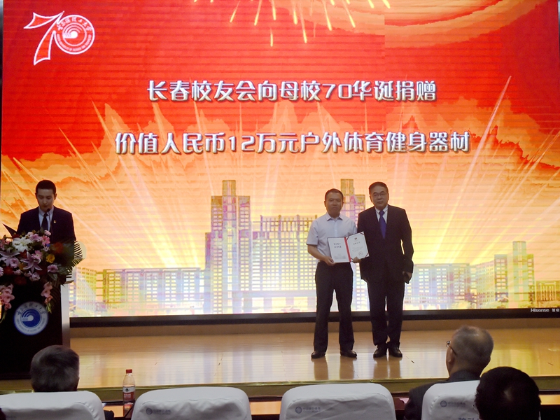 启动仪式上,经过上级疫情防控部门批准,吉林省长春校友会的代表们专程赶到现场,并为在校的师生们带来了价值12万元的户外体育健身器材。刘胜辉副校长向长春校友会会长李学顺颁发捐赠证书。李学顺在致辞中说,长春作为老校长王大珩院士引领的新中国光学事业的发源地,与母校有着更深的历史渊源。长春校友会有责任和决心,发扬王大珩精神,传承辟新,寻优勇进,打造服务校友、助力母校、奉献社会的合作发展平台典范。