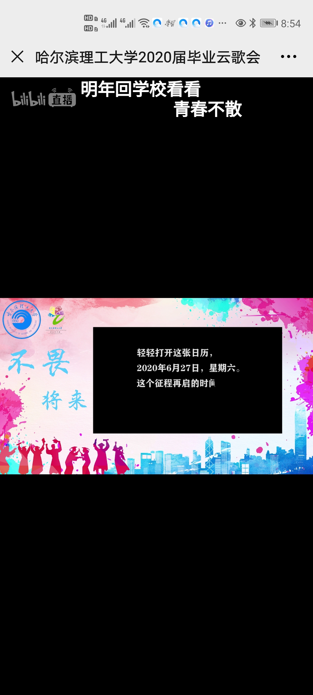 四载时光飞逝过,一朝欢聚话真情。为了送别2020届毕业生,由校团委主办,校大学生艺术团精心打造的一场特殊的线上毕业云歌会如期举行,承载着母校满满的祝福,伴同学们唱响未来,踏歌而行。长达两个月的精心策划和筹备的歌会,于2020年6月27日晚七点在B站和官微抖音平台同时进行直播,最高峰近两万人同时在线观看,相聚云端,共话青春,泪别理工。