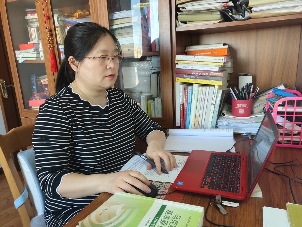 疫情防控期间,她牢记初心、不忘使命,处处以大局为重,在这场没有硝烟的战场上,展现了一名共产党员的风采。她带领马克思主义基本原理教研室的同事精心设计、认真准备,有序组织,圆满完成教学任务,得到学生们的好评;面对困难,她从不放弃,边学边干,刻苦钻研。为保证课程线上教学的质量,她和教研室的同事坚持集体备课,制定了详细的“线上课程流程”,将教学过程落实到每一个细节;为保证学院研究生面试工作顺利开展,她注重每一个环节,多次到学校进行设备测试、制定面试流程等;为凝聚力量,充分激发党员在疫情防控中的必胜信心,她关注每一名党员,不断细化支部的党建工作,让党旗高高飘扬。爱岗敬业,甘于奉献。“道虽迩,不行不至;事虽小,不为不成。”疫情期间,她坚守岗位,无私奉献,全身心投入到工作中去。对于学生,她是真诚倾听、释疑解惑的引路人;对于同事,她是有问必答、有求必应的同行者;对于工作,她是忠于职守、踏实肯干的前行者。